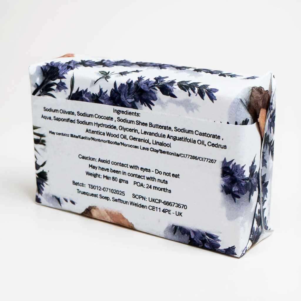 Olive Oil, Coconut Oil, Shea Butter, Castor Oil, Lavender Essential Oil, Cedarwood Essential Oil